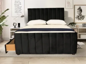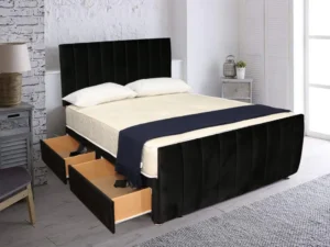 Crushed Velvet Black Divan Bed With Vertical Headboard