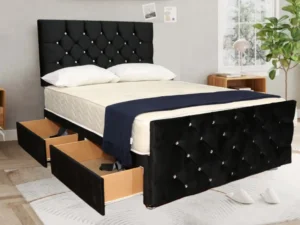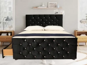 Chenille Black Bed Set With Drawers Storage-Divan Bed