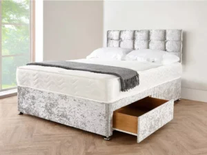 Crushed Silver Velvet Divan Beds Set with Headboard