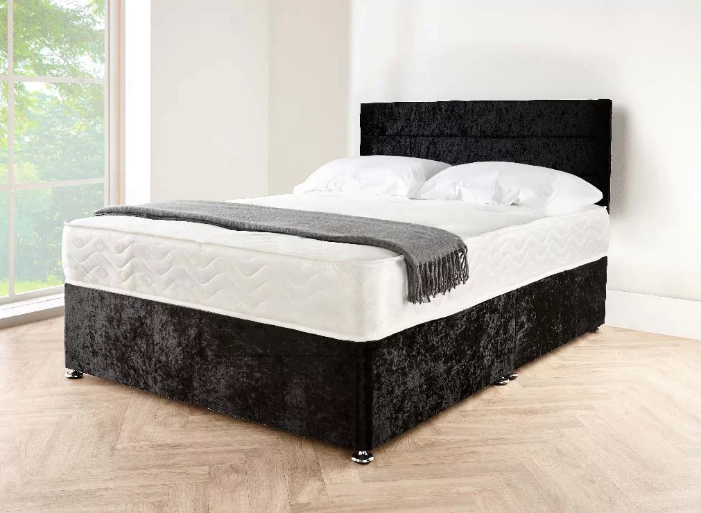 Home Divan Beds Black Crushed Velvet Bed Set with Mattress and Storage