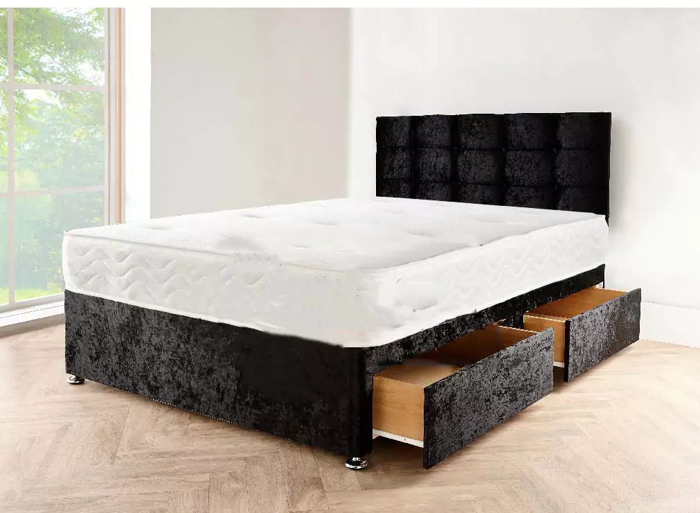 Black Crushed Velvet Divan Bed Set
