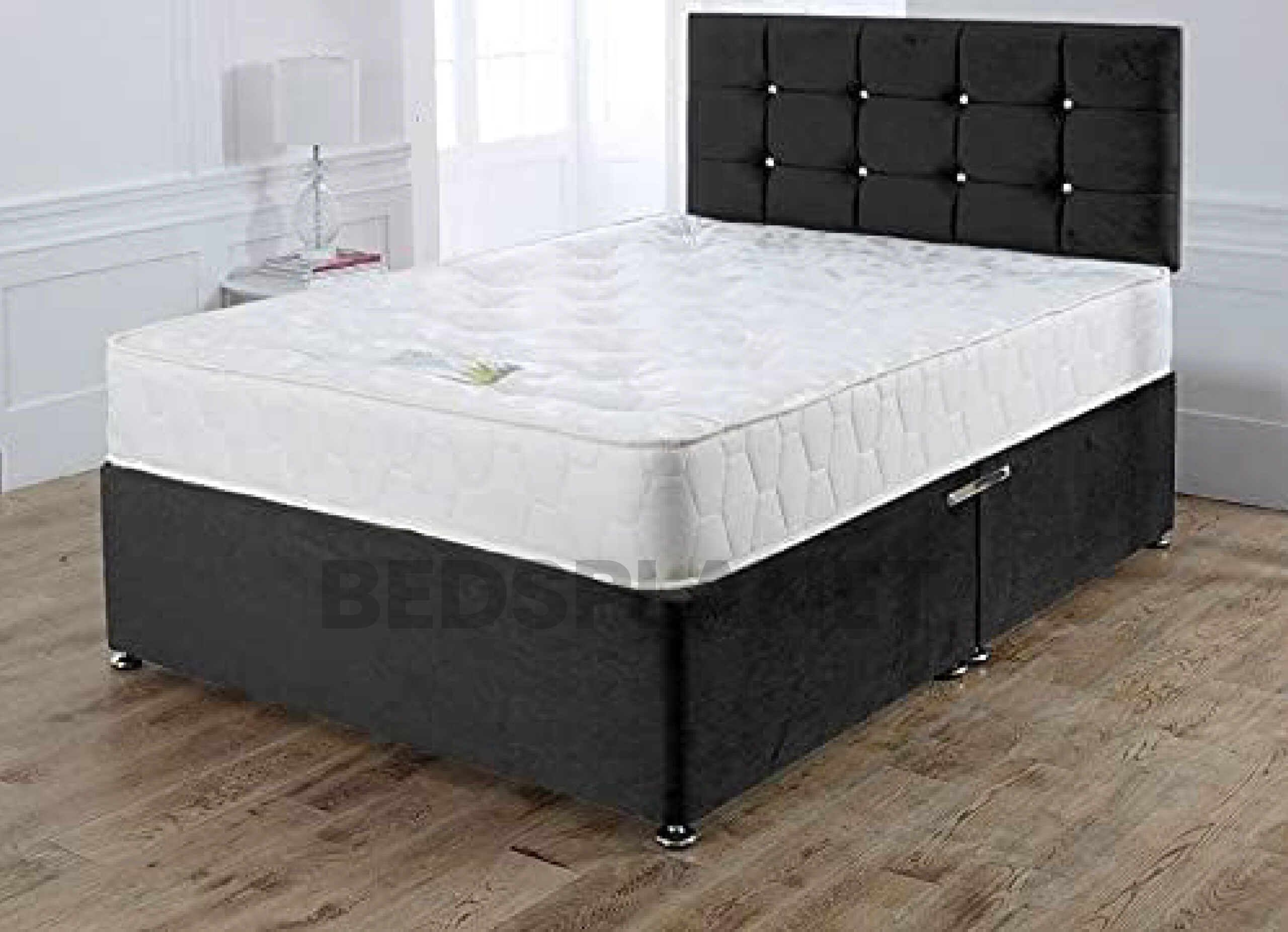 Crushed Velvet Black Divan Bed With Vertical Headboard £189.99 Original price was: £189.99.£89.99Current price is: £89.99.