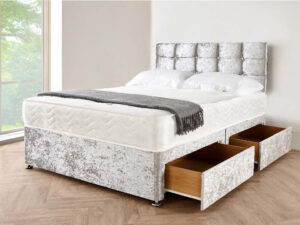 Crushed Velvet Silver Divan Bed Set