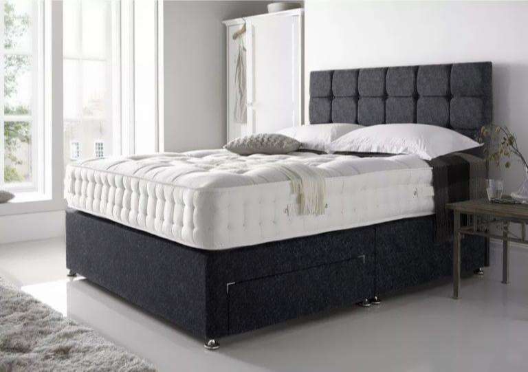 Black Chenille Divan Storage Bed Set with Mattress and Storage All Sizes Available