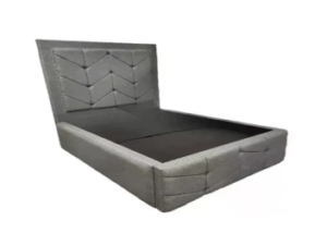 Linen Grey Divan Bed With Cube Headboard and Mattress