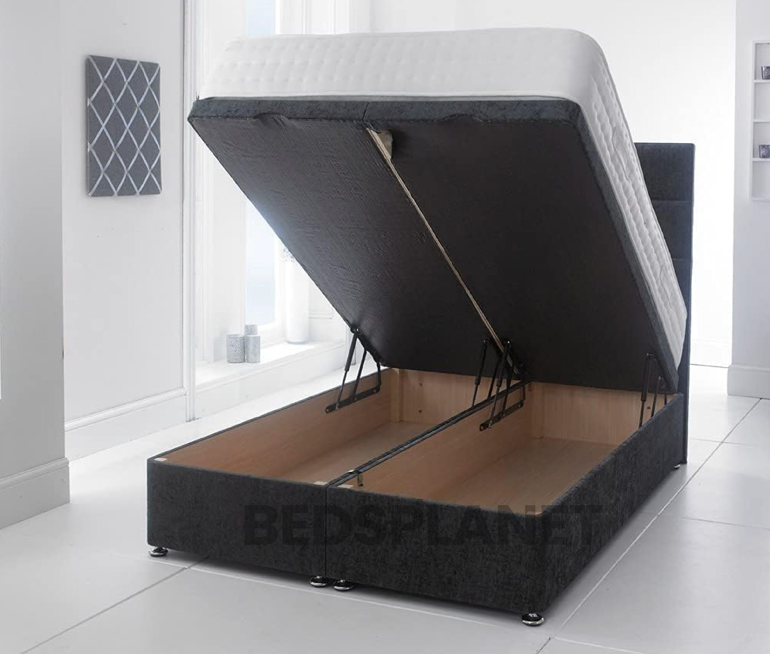 Mink Suede Divan Bed With Gas Lift and Mattress