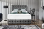 Black Linen Divan Bed Set with Mattress and Storage