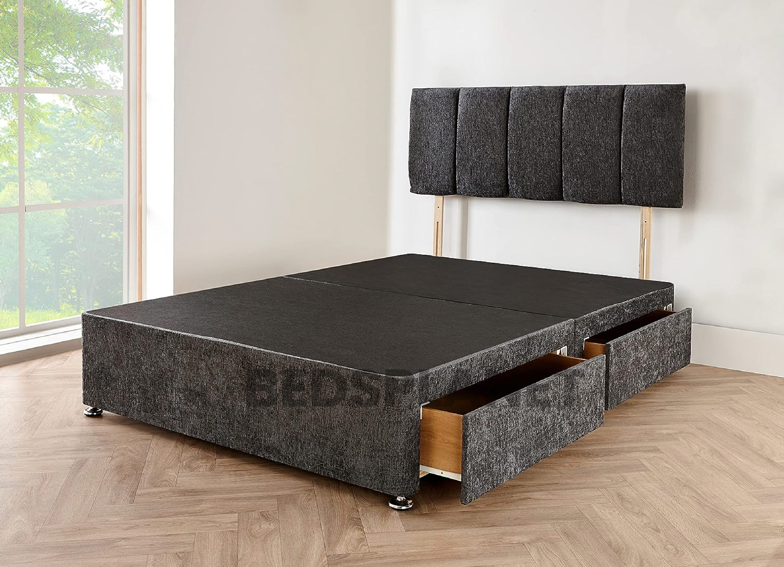 Grey Linen Divan Bed With Drawers