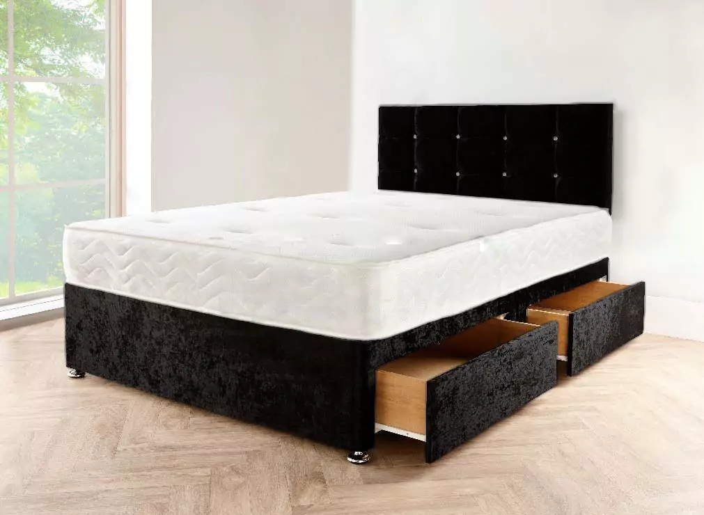 Designer Crushed Velvet Black Divan Bed and Headboard