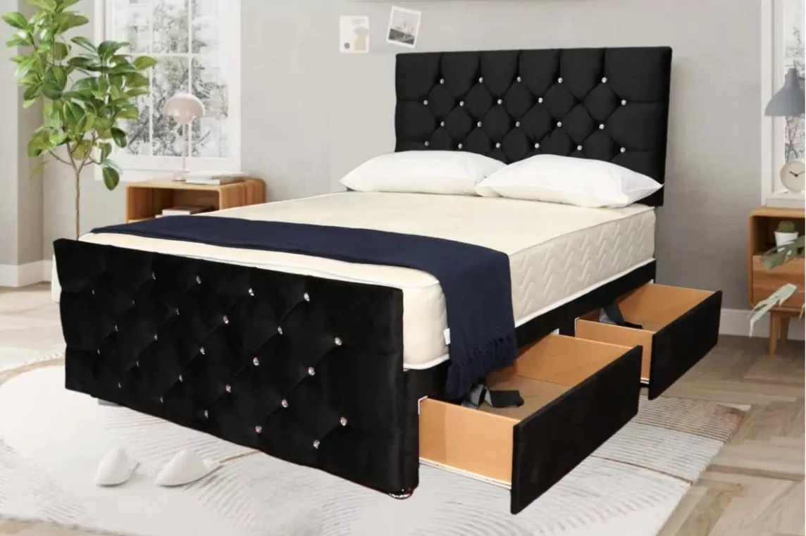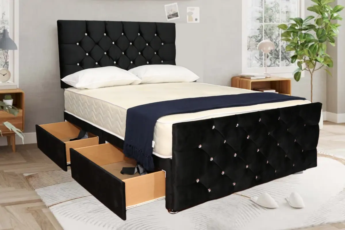 Black suede Bed Frame Divan Bed Set