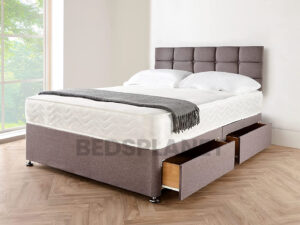 Linen Grey Divan Bed With Cube Headboard and Mattress
