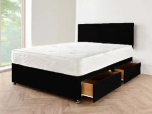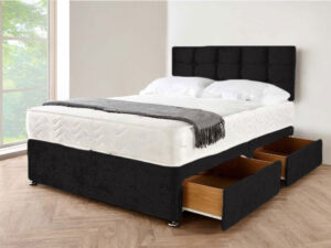 Black Crushed Velvet Divan Beds with Drawers
