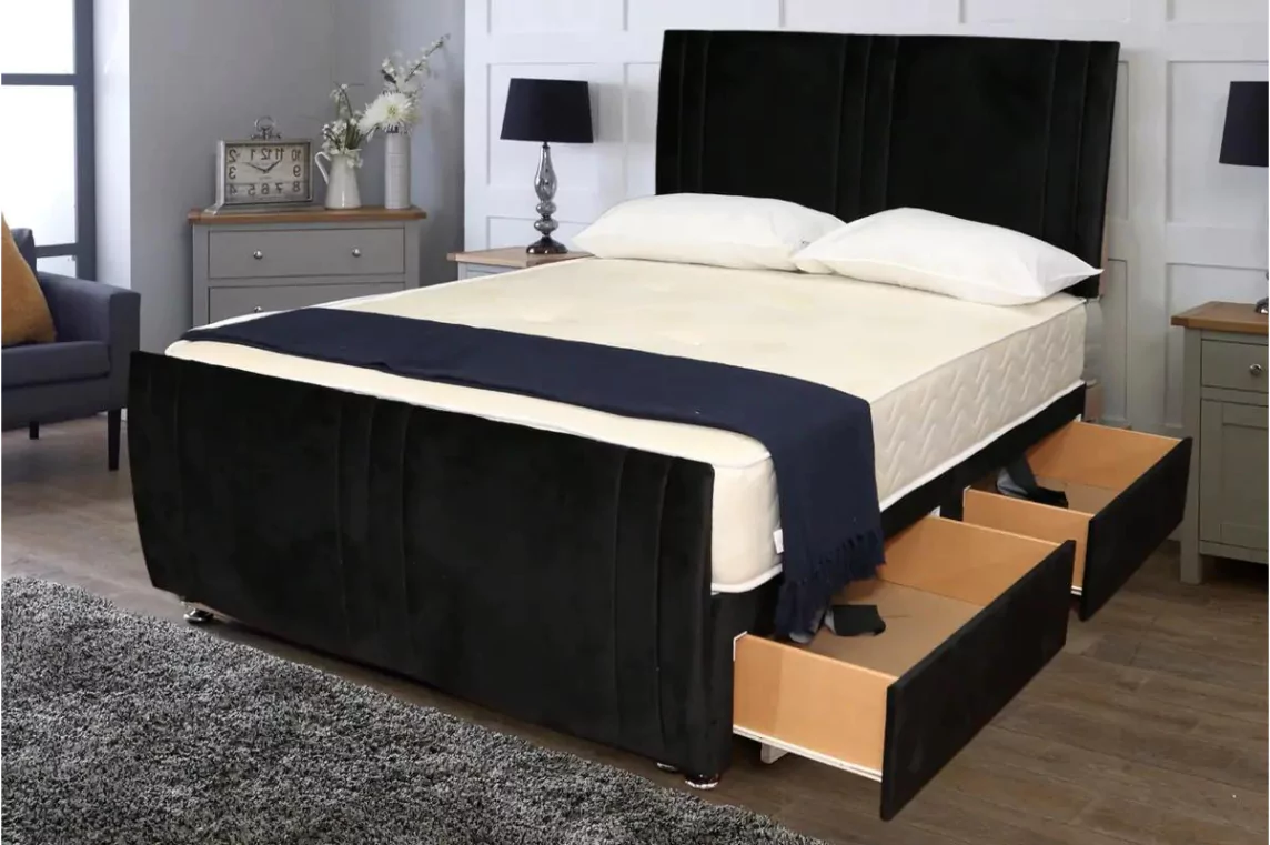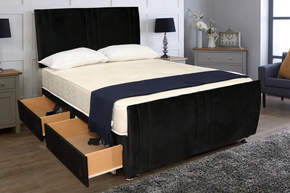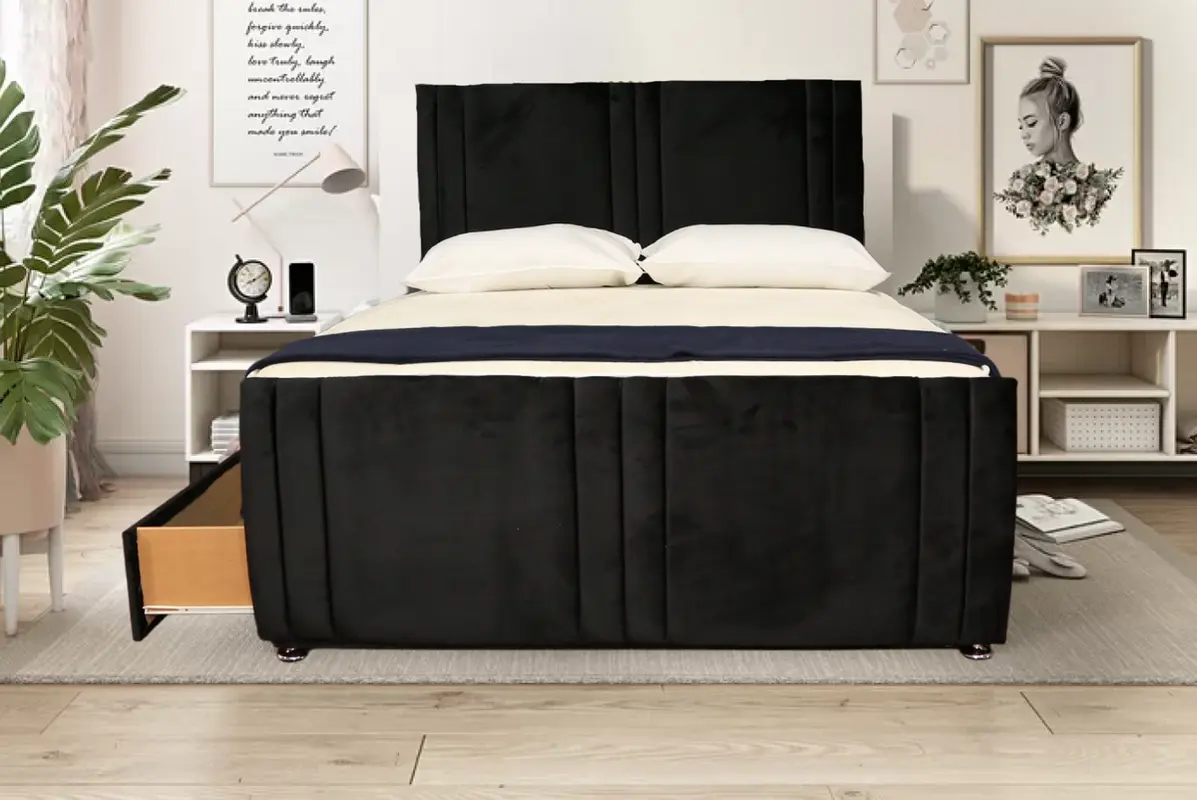 Black suede Bed Frame Divan Bed Set