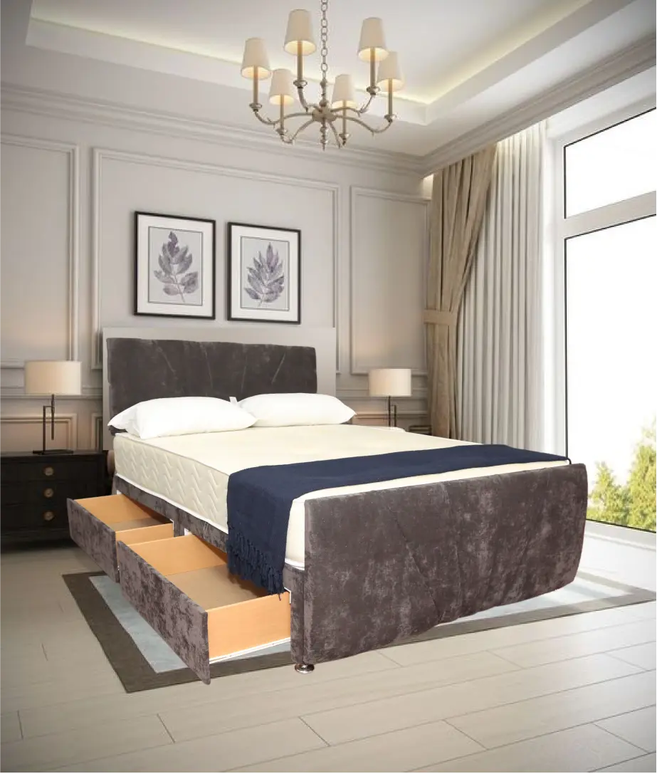 Elevate Rest Crushed Velvet Divan Bed for Comforts