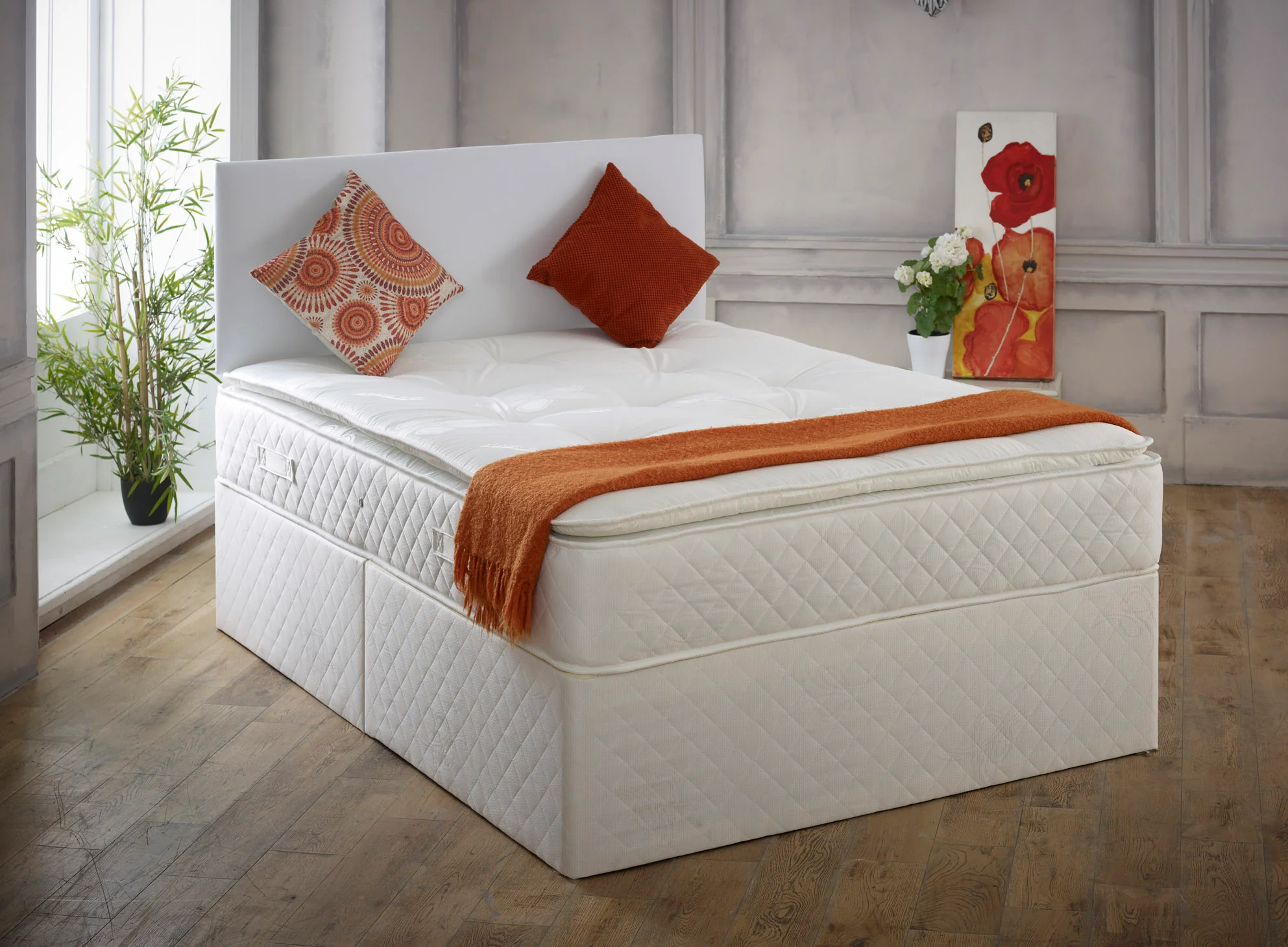 Pillowtop Divan Bed Set With Pocket Mattress And Headboard £189.99 Original price was: £189.99.£89.99Current price is: £89.99.