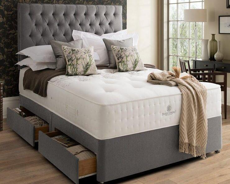 Linen Grey Divan Bed With Cube Headboard and Mattress
