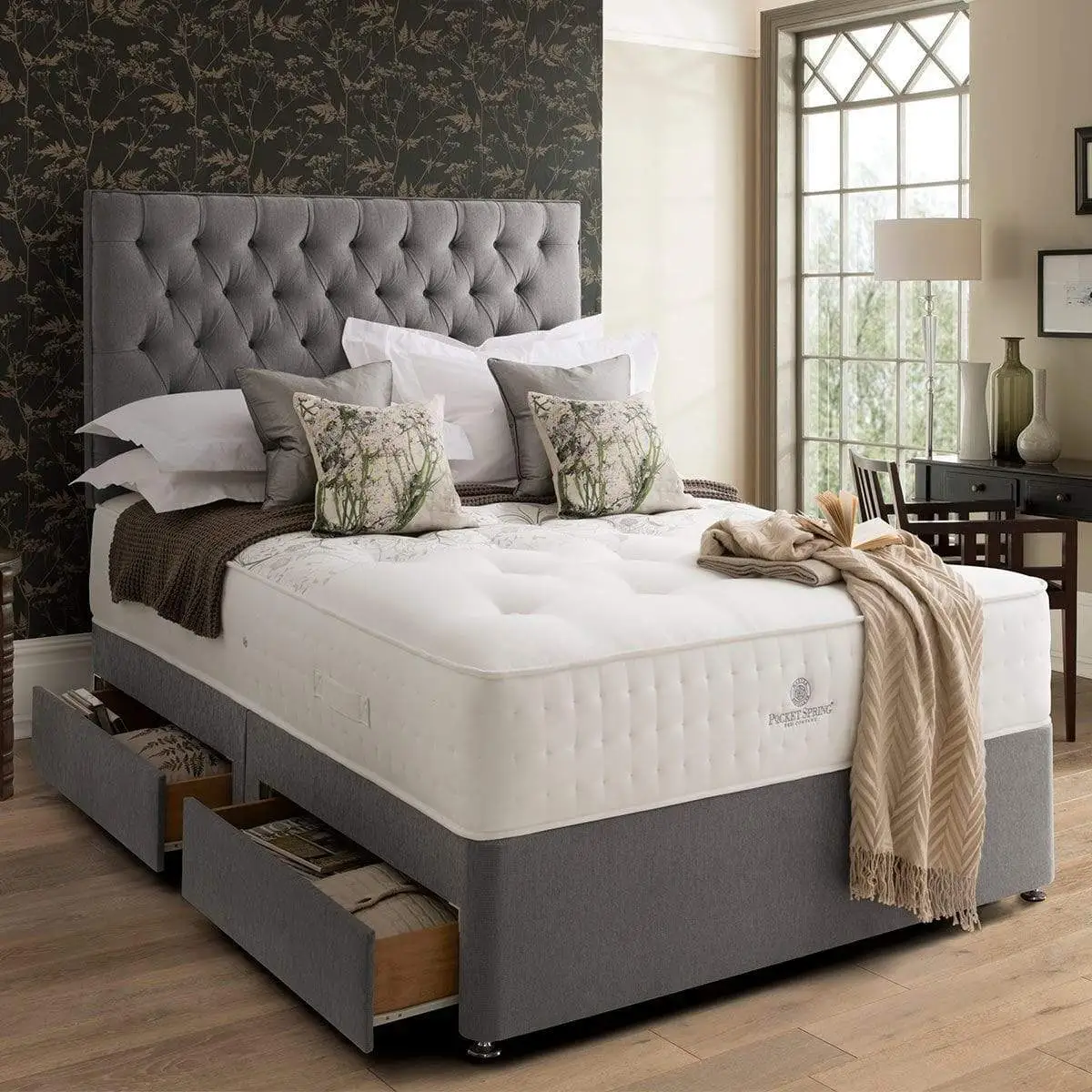 Home Divan Beds Suede Chesterfield Divan Bed Set With Mattress Options