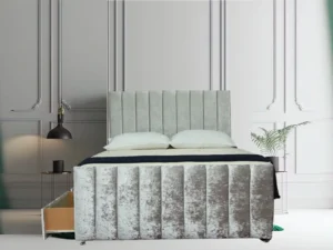 Dreamy Nights Silver Crushed Velvet 4ft6 Storage Divan Bed with Headboard